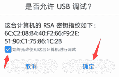 选择 允许USB调试。